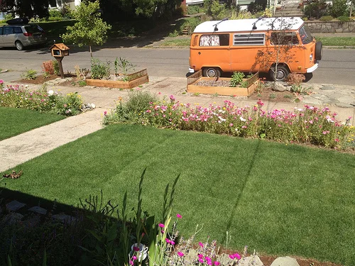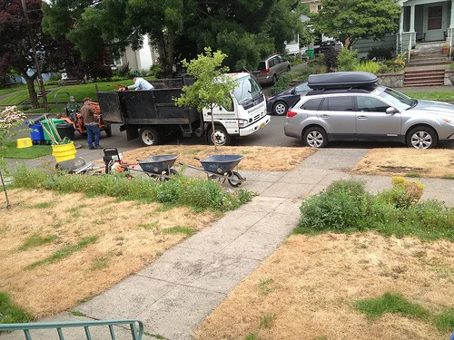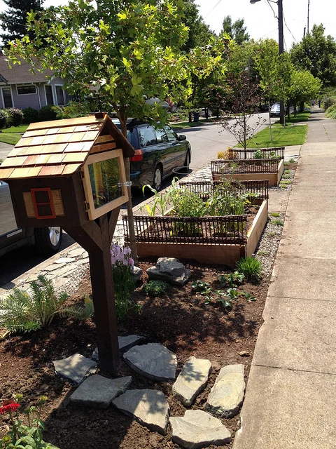 The biggest project in the front yard was the curbside area where we planted two trees, put in veggie boxes (a very acceptable and common thing in Portland), a little library, and stepping stones. This was ALL John’s vision, and he’s been working seriously hard to make it happen. Love! By the way, the veggie boxes are lined with garden fencing – an idea my friend Alicia did and we followed suit. I found them at a local store, but have been unable to locate them online for you (so sorry!).